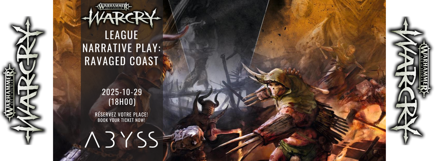Rejoignez une campagne narrative de Warcry inspirée de la trame Ravaged Coast (White Dwarf #504).Affrontez vos adversaires sur des rivages dévastés, entre batailles côtières, raids navals et luttes acharnées pour le contrôle des ports et des îles brisées.