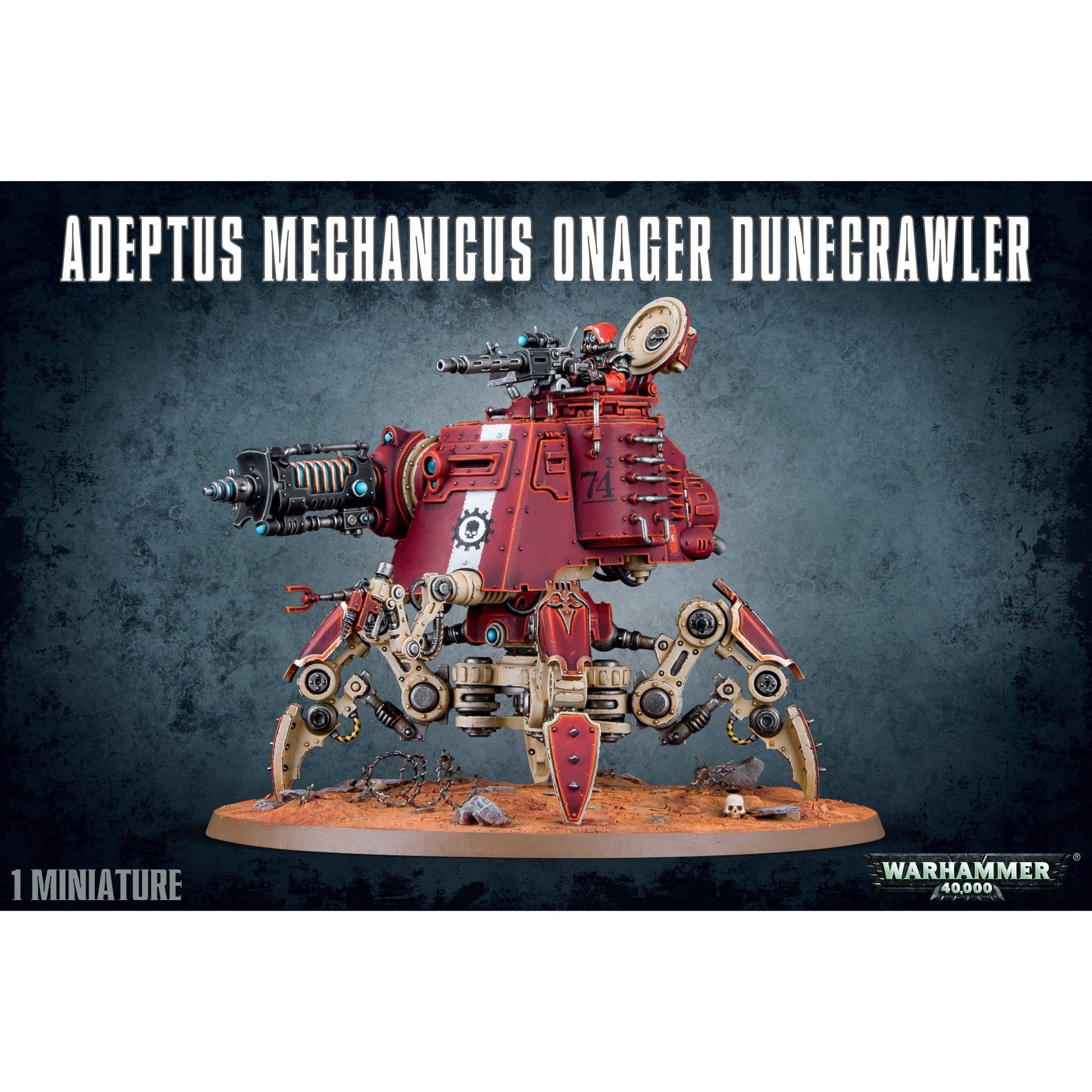 Included with this 119-component multi-part plastic kit, making one Onager Dunecrawler, is a small Adeptus Mechanicus transfer sheet and a 130mm round base.