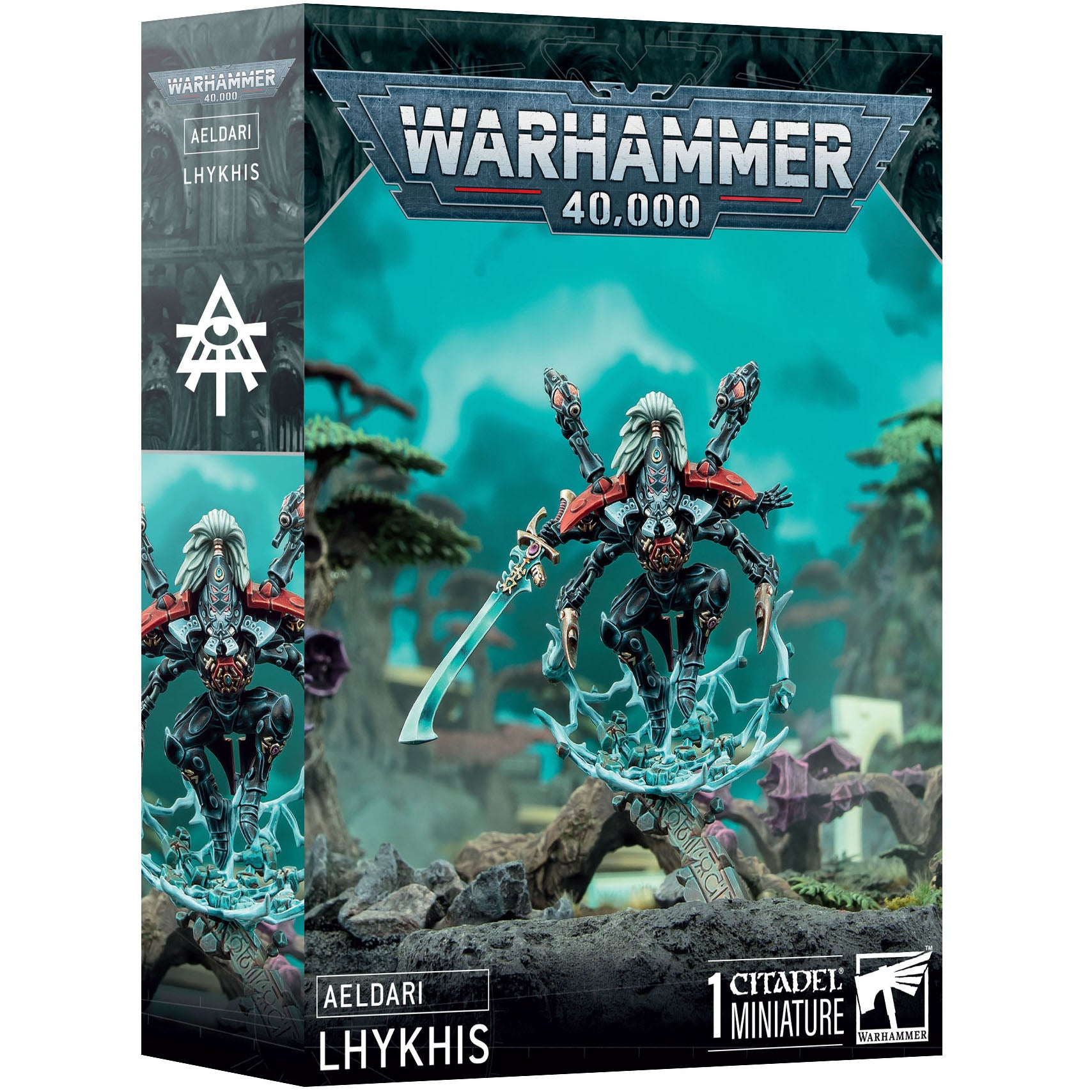 Appearing as if from nowhere to unleash a storm of shredding monofilament, Lhykhis embodies Khaine’s willingness to risk all to defeat the enemies of the Aeldari. She can jump across the hellish realm of the Warp with a speed and precision beyond even the most skilled exarchs, appearing unbidden to aid her fellow Aeldari, armed with the Brood Twain, a pair of carapace-bound death spinners, and the Spider’s Fangs, dual monofilament injectors akin to the feared Harlequins kiss.