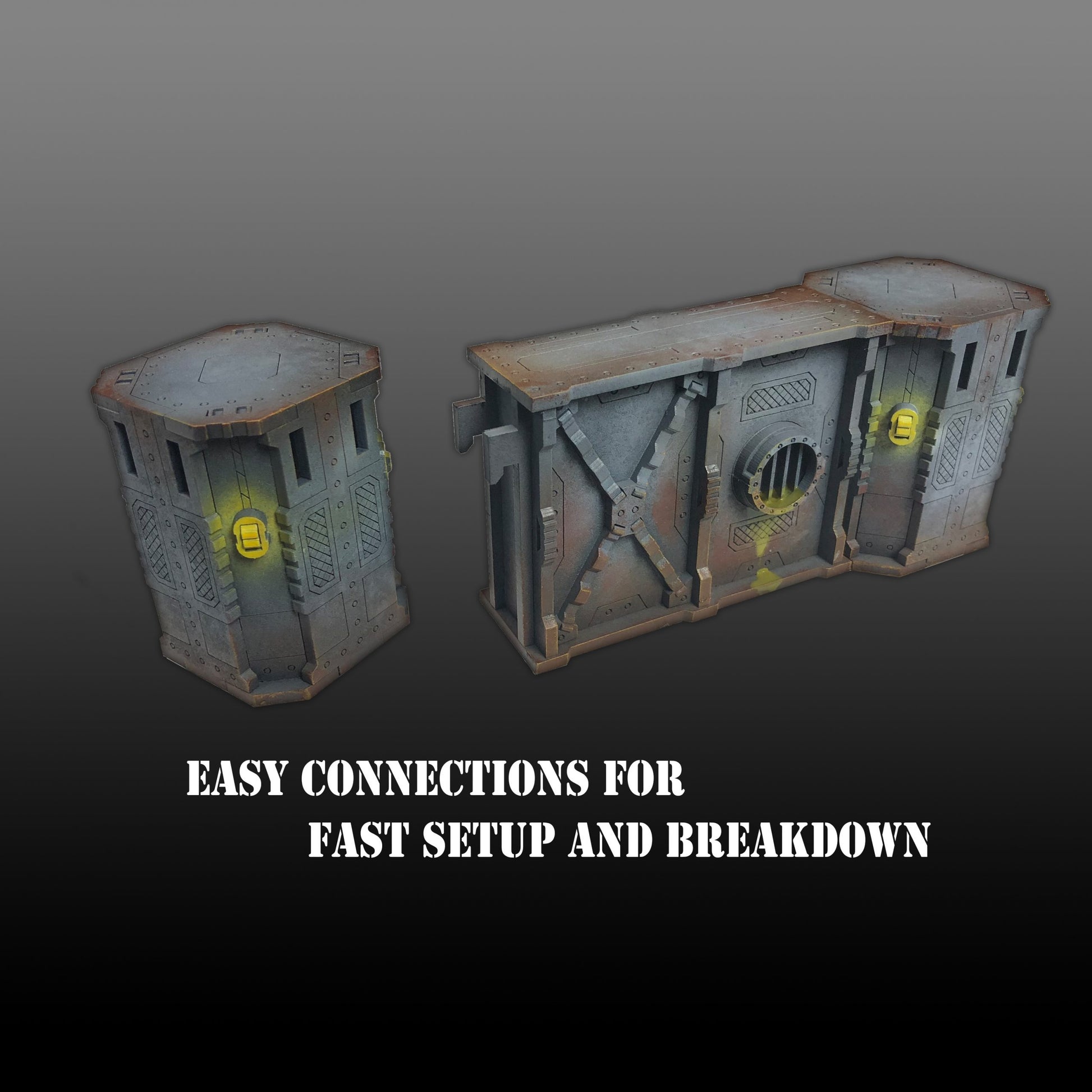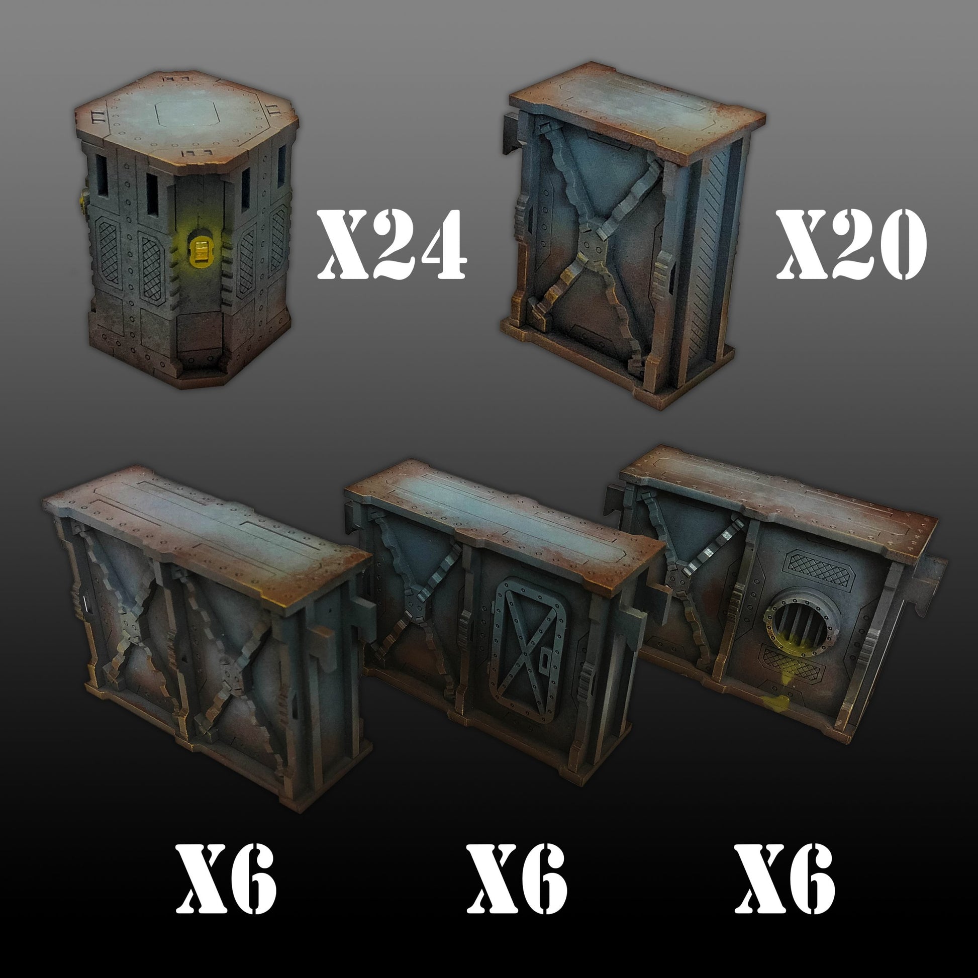 This bundle is a boatload of terrain, great for Necromunda, Warhammer 40k, This is Not a Test and just about any other sci-fi tabletop. These walls are sized to fit the Games Workshop Necromunda: Underhive Tile sets and contains enough pieces to set up any of the scenarios maps from the base game.