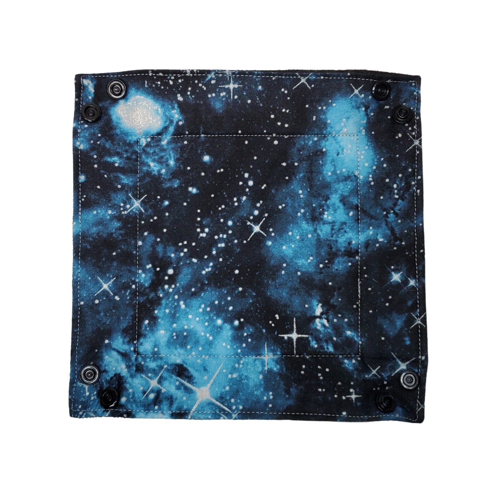 Beautiful hand-sewn dice trays, Lays flat for storage and snaps in the corners to stand up. Reinforced with heavy weight interfacing to protect your surface and dice. Made with a wonderful patterned fabric top and a faux leather base