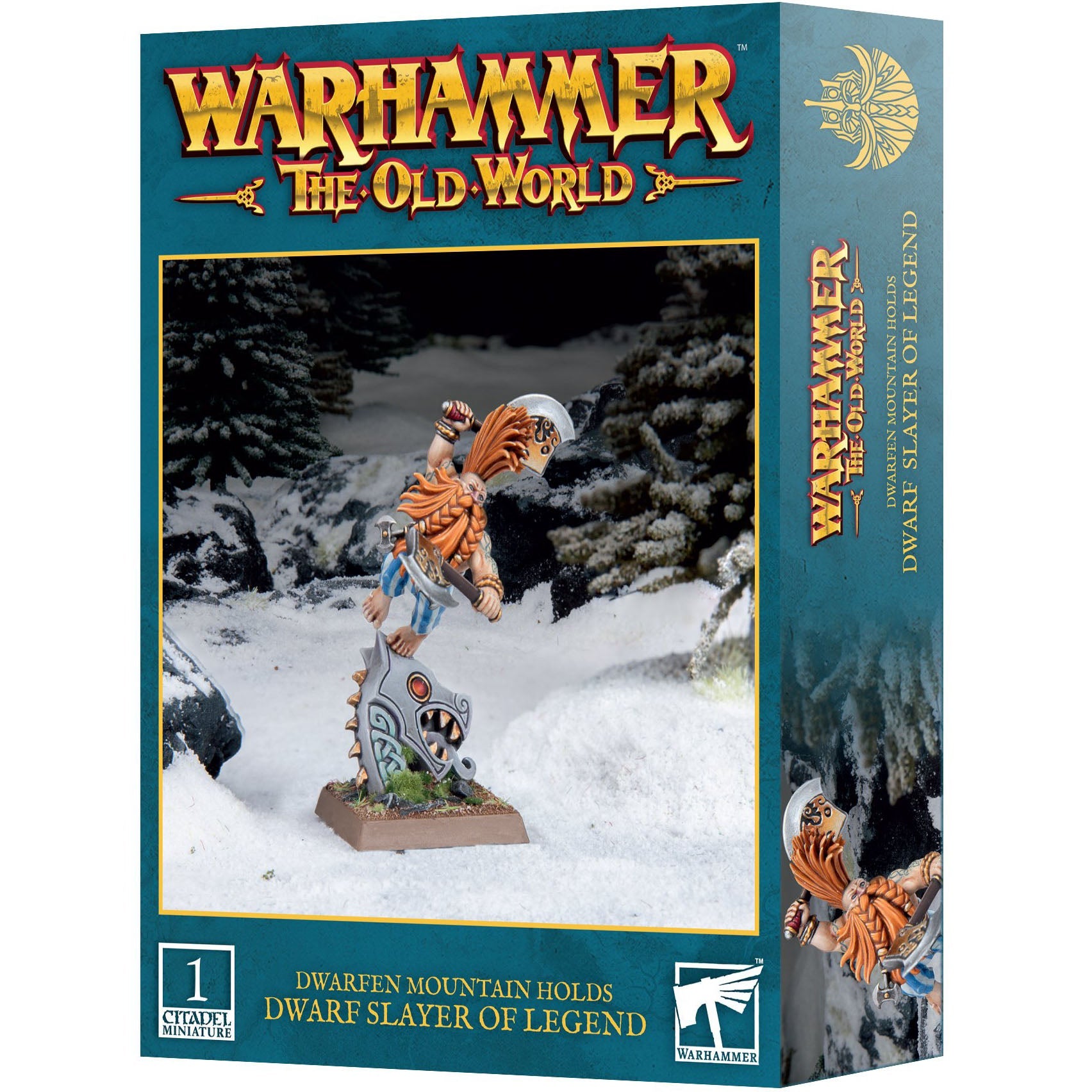 This multipart plastic kit builds a Dwarf Slayer of Legend, for use with Dwarfen Mountain Holds armies in games of Warhammer: The Old World. Leaping into battle, this Slayer is an ideal, characterful option for your vengeance-seeking force.