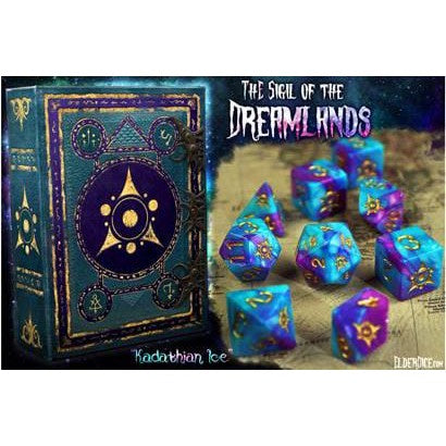 Set of nine Kadathian Ice Sigil of the Dreamlands Polyhedral Elder Dice