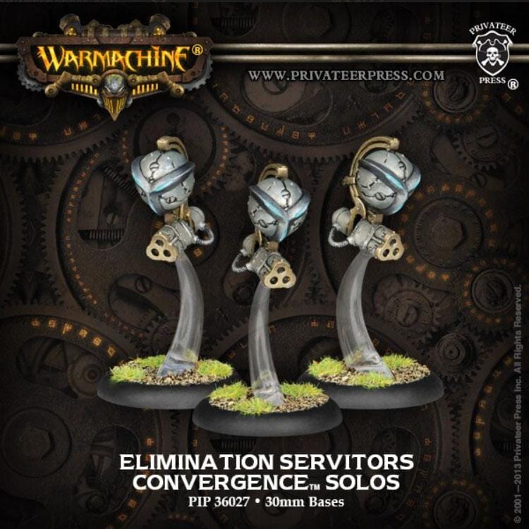 The elimination servitor operates by one directive: hunt down and terminate any and all it does not recognize as an ally. Once it has acquired a target, an elimination servitor advances in a series of precise movements intended to bring its spike projector to bear with the greatest efficiency. The spikes inflict modest but reliable damage and are particularly effective against foot soldiers.