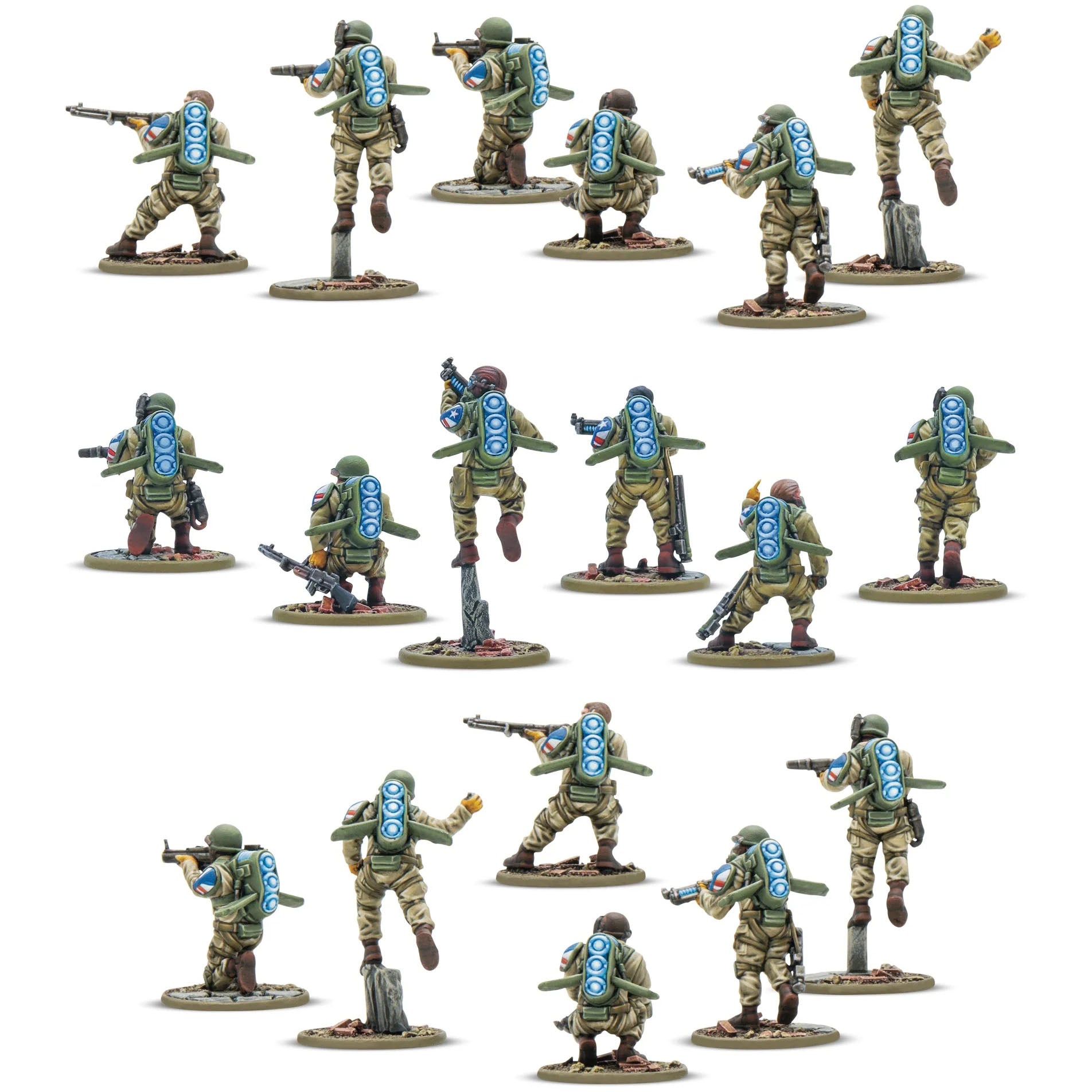 American advancements in repulsorlift Rift-tech have allowed a man to soar through the air in great bounds, or drop from an aircraft and control his descent safely. Using this technology, US Airborne paratroopers have been reborn as the Fireflies! These elite troops are used where surgical precision and lightning speed are called for, dropping behind enemy lines or as the vanguard of American assaults. Only the bravest and fittest men pass Firefly training, and their missions are some of the most hazardous imaginable.