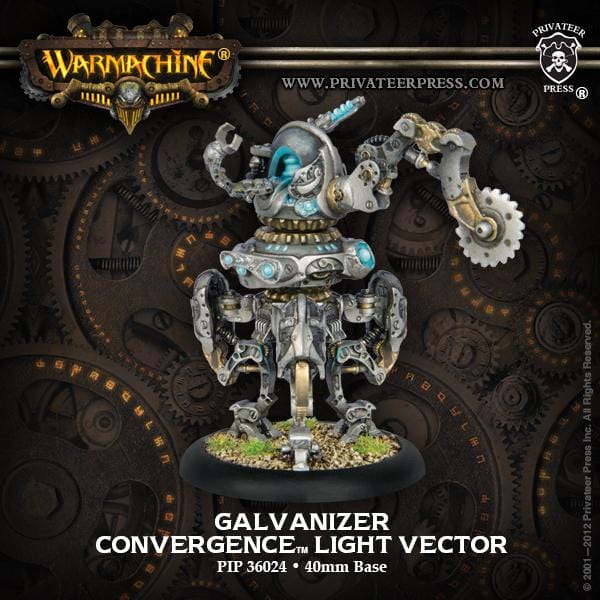 The oldest vector design still in use, the Galvanizers form the core of the Convergence?s vector armory. Galvanizers are equipped with metal saws powerful enough to rip through the thickest armor plating or cause horrific damage to flesh and bone yet precise enough to be used in conjunction with their field repair arrays for quick battlefield maintenance. This versatility makes the Galvanizer an indispensable battlefield asset.