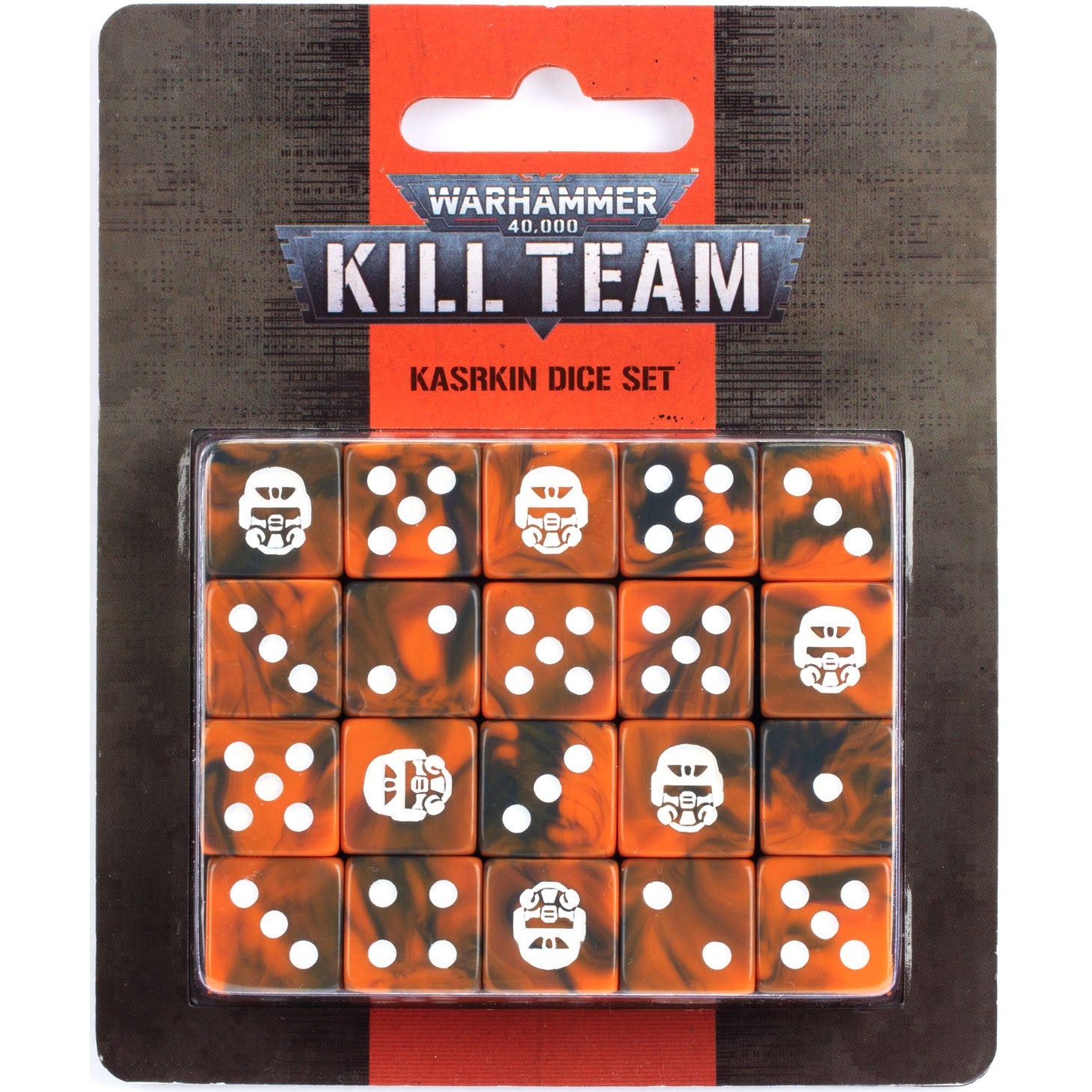 Each dice features a Kasrkin Kill Team icon on the 6 face.