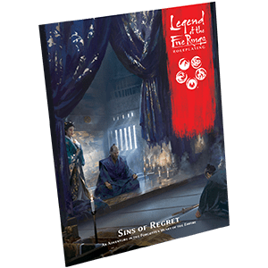 Escape the ghosts of the past in the Sins of Regret adventure for the Legend of the Five Rings Roleplaying Game! This 32-page book takes you to the troubled village of Twin Blessings. Here, the elements are imbalanced, the crops fail, bandits prowl the woods, and still the daimyō demands his due. But Lord Jikai faces troubles of his own as duplicitous vassals and restless spirits threaten to unseat him. If you help Jikai hold his power you may win his favor or even prove yourself worthy of the lord’s patronage, but is the daimyo worthy of your assistance? What does Bushidō demand in the face of this looming conflict? Only you can decide which path you will take. Does your loyalty belong to the villagers, the lord, or yourself alone?