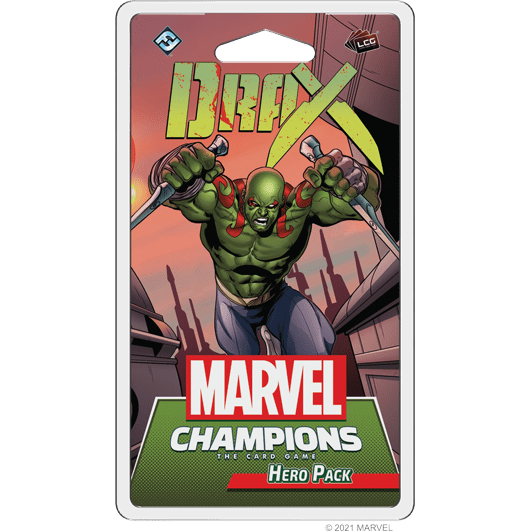 As a member of the Guardians of the Galaxy, Drax charges into the scene with unrelenting fury in this expansion pack, which introduces Drax as a brand-new playable hero, along with his fifteen signature cards. With a pre-built Protection deck ready to go, you’ll be able to try out Drax’s unique vengeance-fueled gameplay from the moment you open the box. Punish the villains who wrong you and show them why Drax is a force to be reckoned with!