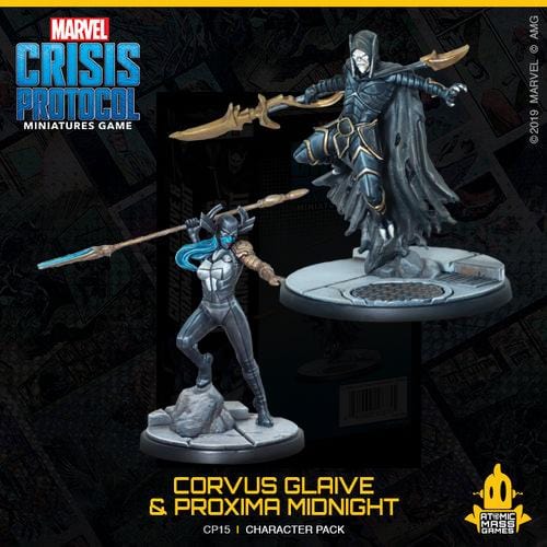 Devoted members of Thanos’ Black Order, the husband and wife team of Corvus Glaive and Proxima Midnight have terrorized the galaxy in service to their dark master. Proxima Midnight takes great pleasure in testing herself in battle, relying on her inhuman speed, strength, and agility and her spear, which houses a star trapped in a quantum singularity.