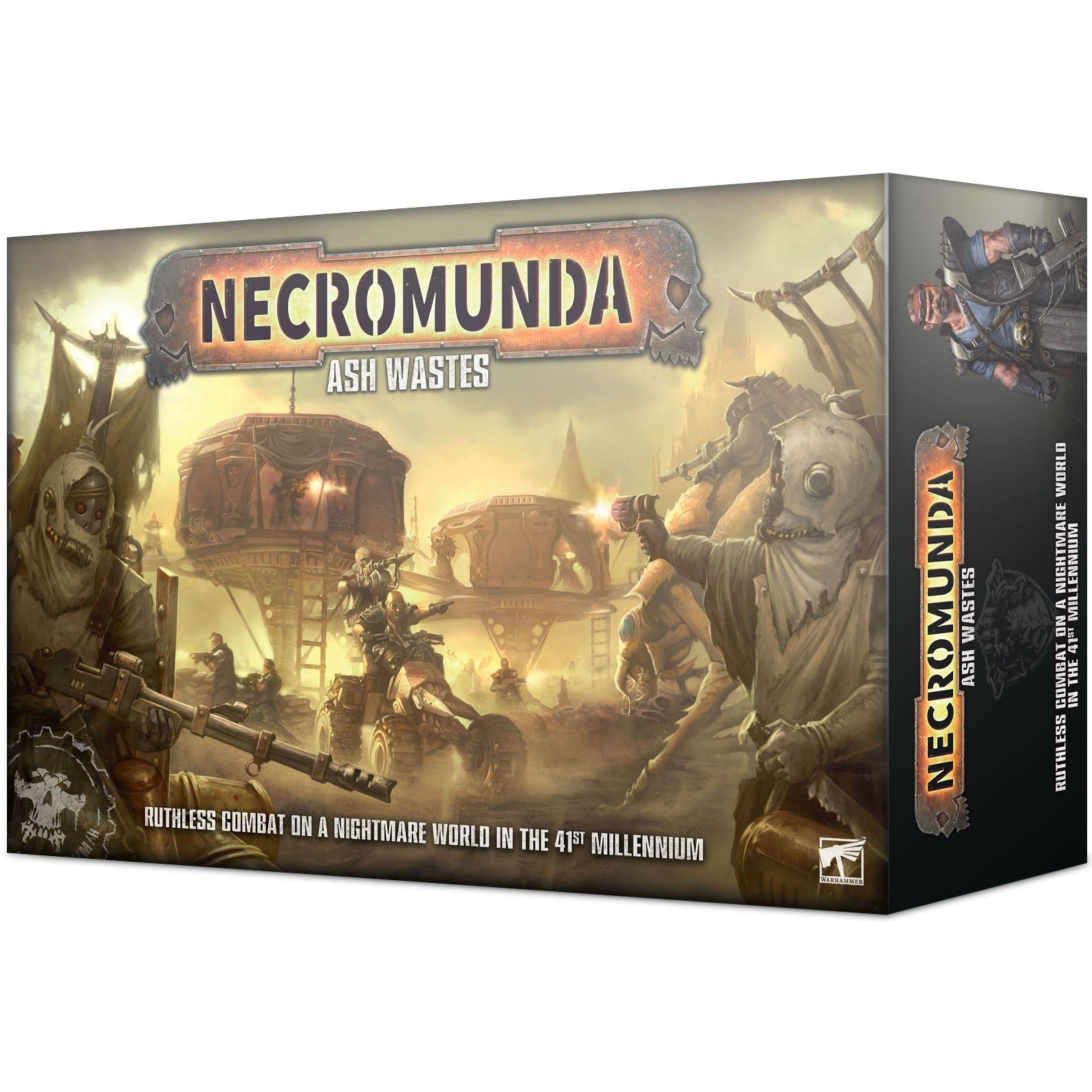 Includes brand new rules for Mounted Fighters and Vehicles, as well as 26x miniatures, including the new Ash Waste Nomads and the Orlock Outrider Quad, as well as new terrain all themed around the Necromunda Ash Wastes.