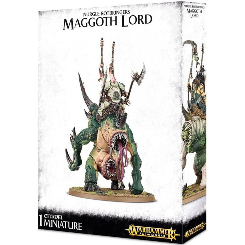 This 73-piece plastic kit makes one Morbidex Twiceborn riding a disgusting Maggoth. Clad in corroded Chaos armour and armed with a great weapon, Morbidex’s face is squat and horned and boasts a toothy, leering smile that resembles the grin found on the faces of the legions of Nurglings that follow him.
