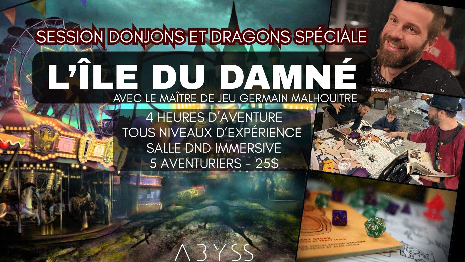 L'Abyss vous invite à venir assister à une session Donjons et Dragons spéciale dans sa salle immersive avec le maître de jeu Germain Malhouitre!