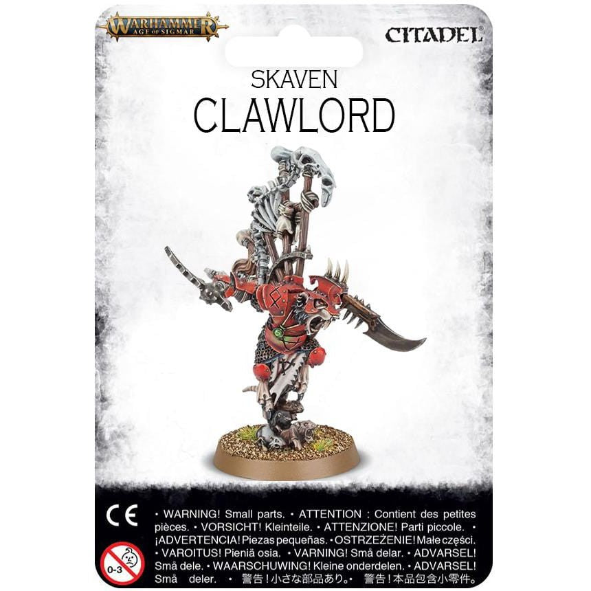 This pack contains one Skaven Clawlord – a finely detailed resin-cast kit that comes in four components and is supplied with 1x 20mm square base and 1x 32mm round base.