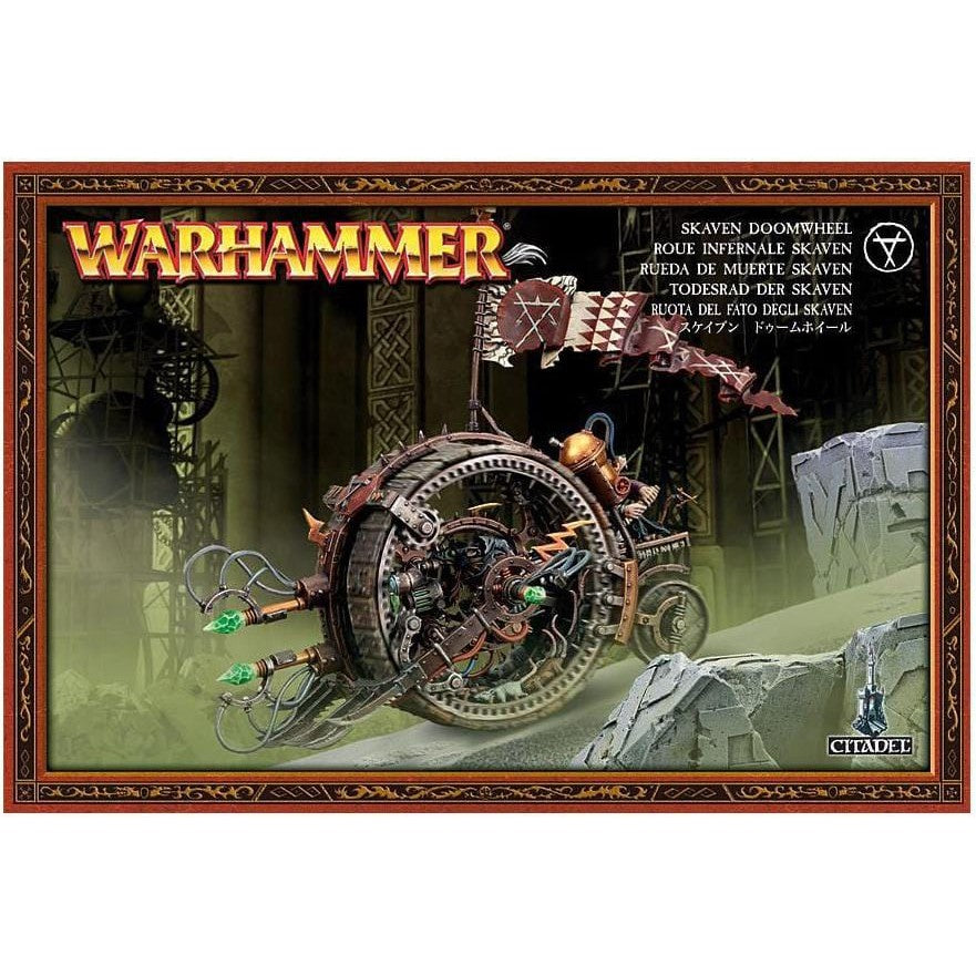 This box set contains one multi-part plastic Doomwheel. This 58-piece kit comes with a host of optional pieces that can be used to personalise your Doomwheel. Model supplied with a 50mm x 100mm base.