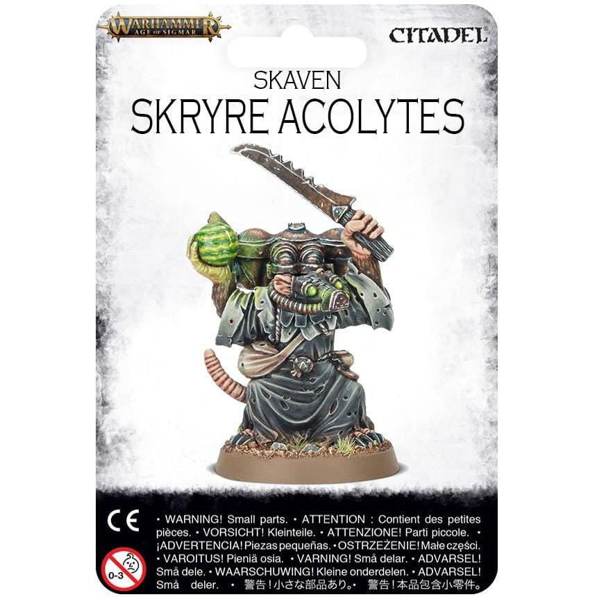 This blister contains one metal Skryre Acolyte. There are three different Acolytes available and this blister may contain any one variant. Model supplied with a 20mm square base.