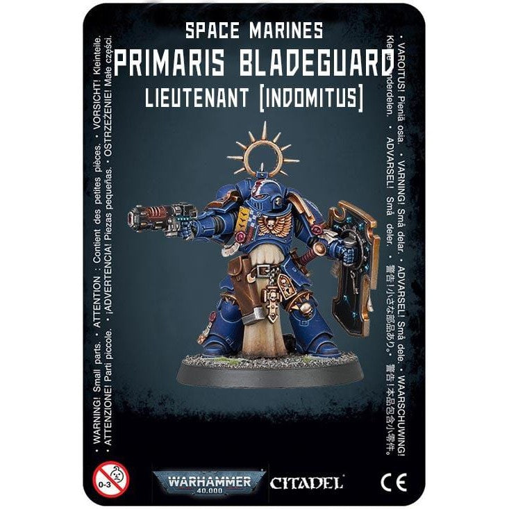 This multipart plastic kit builds one Space Marine Lieutenant carrying a storm shield, a skilled sub-commander of the Adeptus Astartes. He also carries a rare and exotic neo-volkite pistol, with a sheathed power sword at his hip. This aggressive leader's armour incorporates a surcoat and is festooned with relics and symbols of status, marking him out as a clear veteran, while his storm shield is emblazoned with the sign of the Indomitus Crusade.
