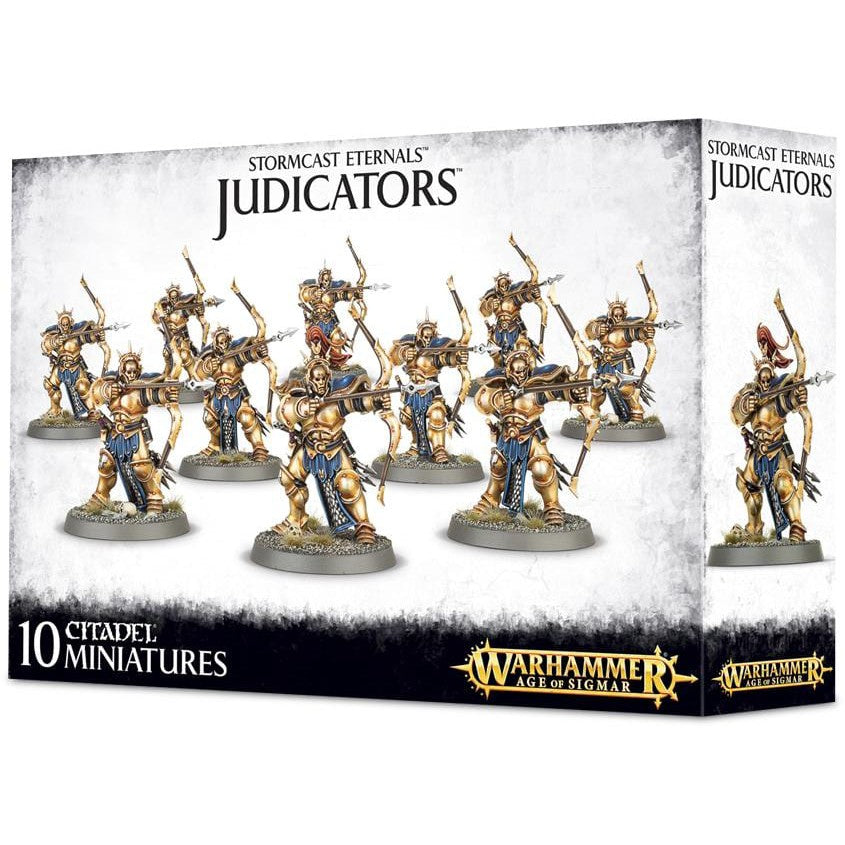 This multi-part plastic kit gives you everything necessary to build 10 Stormcast Eternal Judicators, with the option of assembling 2 as Judicator Primes. They come armed with either long-range skybolt bows, or boltstorm crossbow and storm gladius, with 2 heavy-weapon shockbolt bow and thunderbolt crossbows included. 4 special heads for the Primes are included.