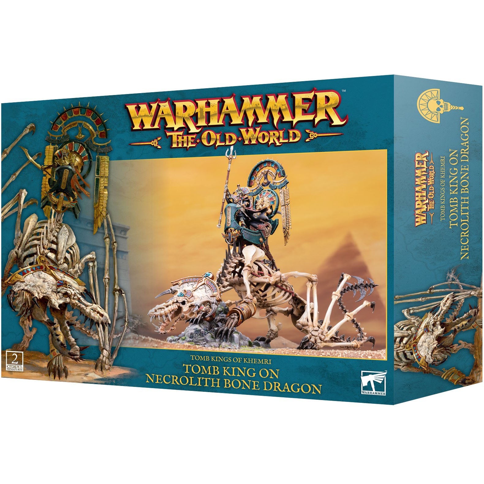 Tomb Kings are the ancient, long-dead rulers of Nehekhara, reborn through the archaic rituals of their Liche Priests. Only the most prestigious rulers can harness the undying will of a fearsome Necrolith Bone Dragon, much less ride such a behemoth into battle. These reanimated wyrms descend upon the living, given unnatural flight by skeletal wings, before lashing out with wicked claws and jagged fangs. Those who survive must contend with clouds of seething dust and desiccating smog, for a dragon's breath is lethal even in death.