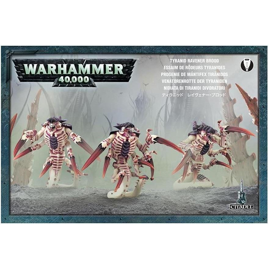This box set contains three multi-part plastic Tyranid Raveners. This 57-piece set includes a range of additional components that allow you to personalise your Ravener Brood. Models supplied with 40mm round bases.