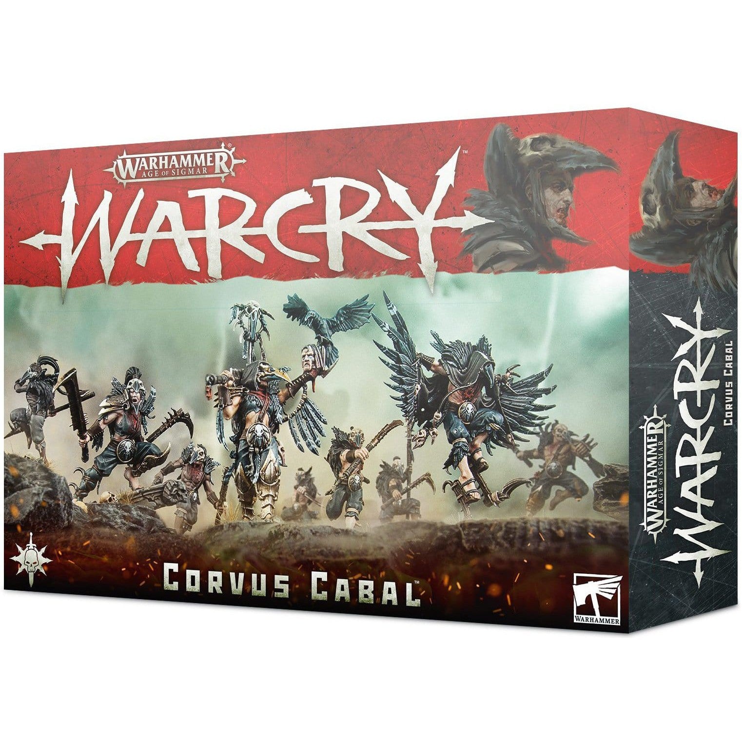 A brand-new Warcry warband containing 9 Corvus Cabal Citadel Miniatures and all of the cards you need to use them in games, including: – fighter cards, a warband ability card and divider cards