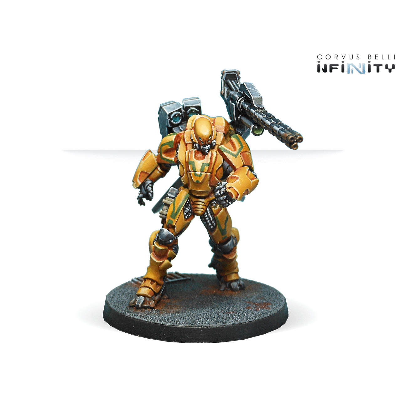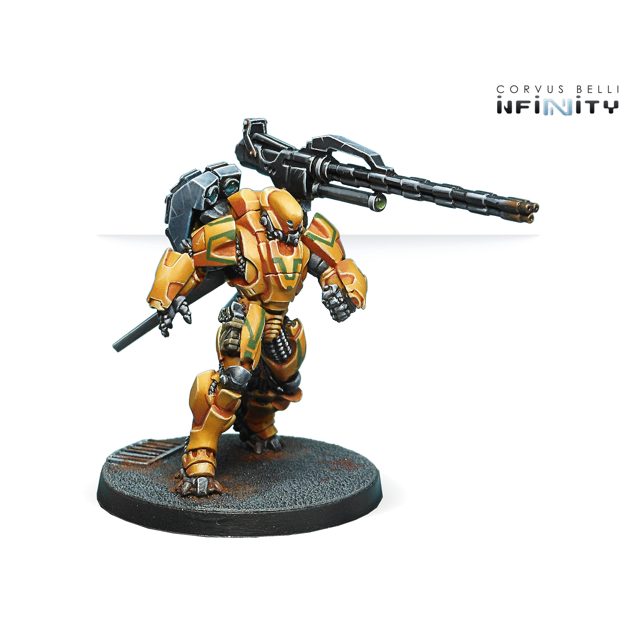 Their armor suits are not built to withstand enemy fire, but to carry their armament and attack, with the goal of keeping the enemy busy. When the Yān Huǒ jump into action, their opponents are overwhelmed by the onslaught, and are unable to develop an operational strategy while their life expectancy quickly wanes. The exchange of fire is no longer counted in the seconds, but is accelerated into painful milliseconds. Round by round, strike by strike, their enemies fall one by one, unable to believe what rains down upon them: thunder and lightning, the flashy, deadly fireworks of the Yān Huǒ Regiment.